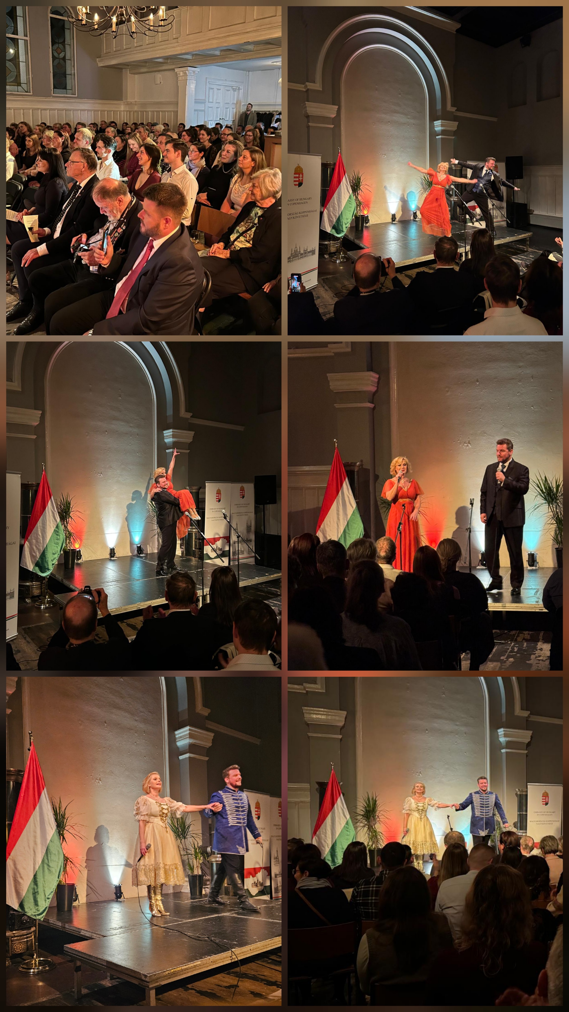 The evening featured a well-rehearsed, nationally and internationally known and recognized, extremely popular performing duo with decades of experience in the world of operetta, who performed the most beautiful and well-known songs of the Hungarian operetta world. Károly Peller and Szilvi Szendi once again delivered a world-class performance with their cheerful concert, playing, among others, the evergreens "Hajmási Péter, Hajmási Pál," "Cintányéros cudar világ" (The Cruel World of Cintányér), and "Szép város Kolozsvár" (The Beautiful City of Kolozsvár), which were unanimously appreciated by the audience. The audience acknowledged the high-quality performance, which was organized and carried out by the Hungarian Embassy in Copenhagen, with a long round of applause. Operetta is a Hungarian genre that is traditional, lighthearted, and entertaining, so it is not surprising that the younger generation was also well represented among the audience. The event provided an excellent opportunity to showcase Hungary's cultural diversity to a large audience once again.